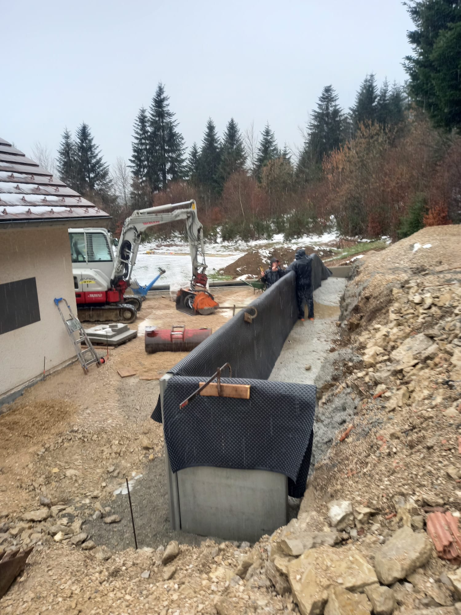 Au fil des années, Jeunot BTP a accompagné de nombreux particuliers, professionnels et collectivités dans la réalisation de leurs travaux. Qu’il s’agisse de préparation de terrain, installation de réseaux, création de murs de soutènement ou d’aménagements extérieurs, chaque chantier est réalisé avec rigueur et précision.